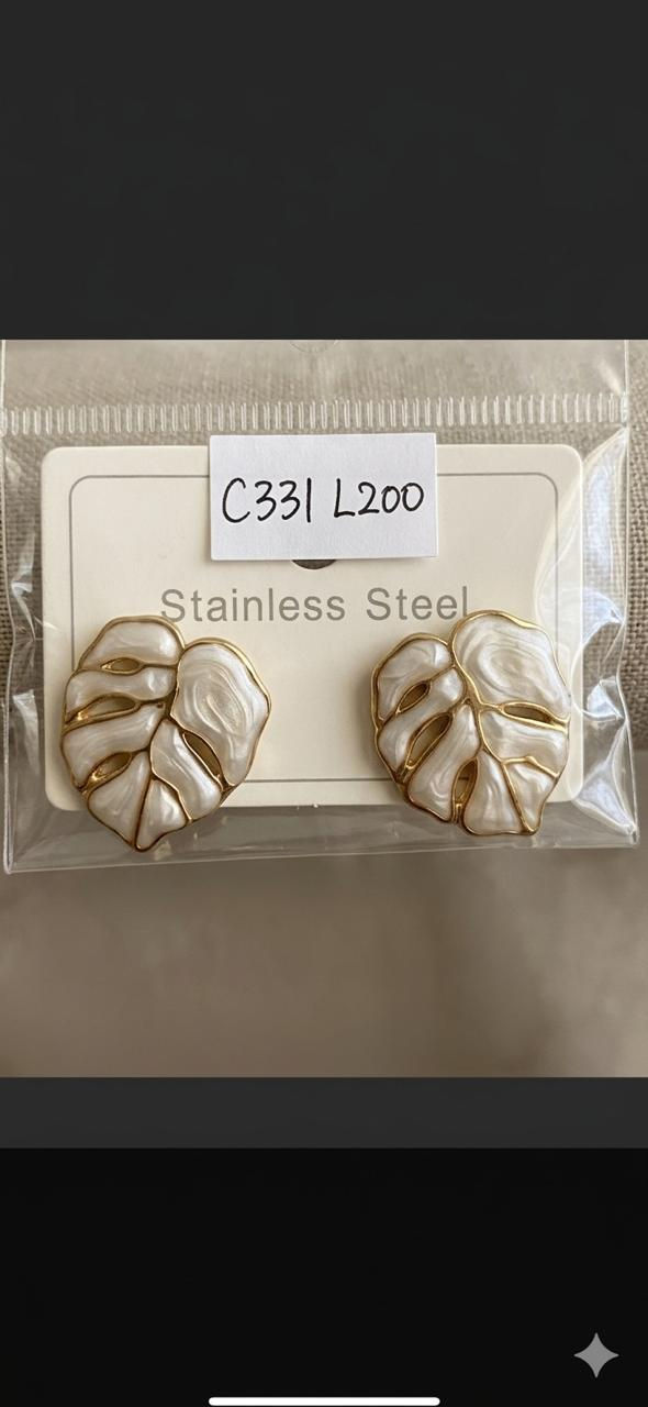 Aretes de Acero Inoxidable Maxibroqueles "Pearlescent Monstera" con Acabado Naca