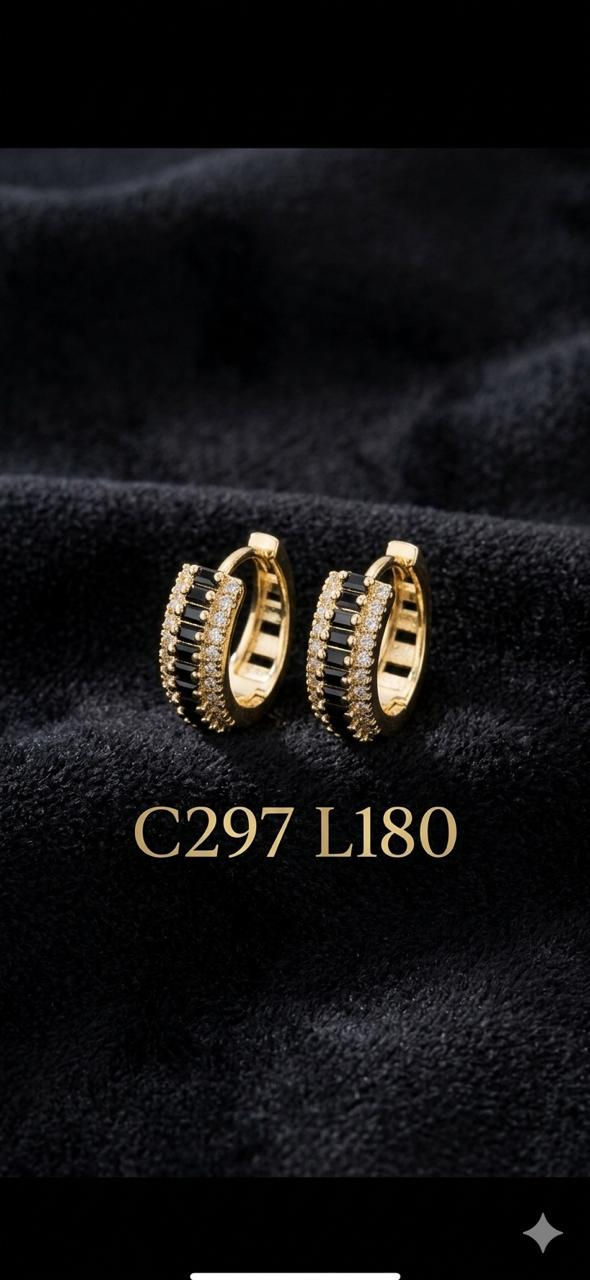 Aritos laminado de oro 18k Huggies "Midnight Glam" con Baguettes Negras y Halo d