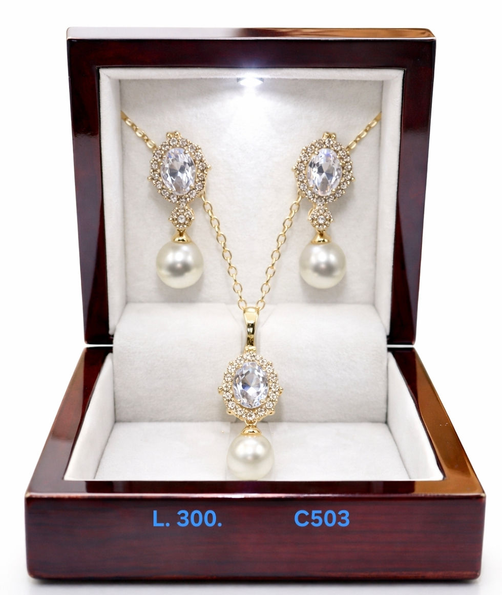 Conjunto Perla Cristal Elegancia Clásica – Doble Laminado de Oro 18k